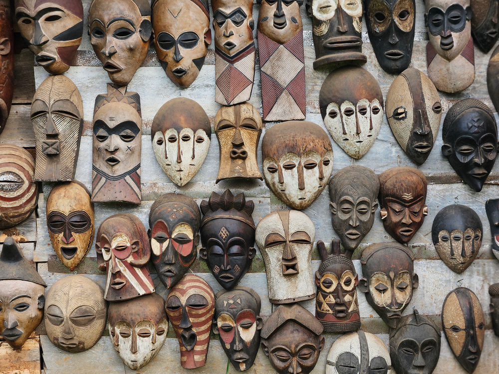 Transfer naar het Masaka district. Onderweg wordt uiteraard gestopt bij de evenaar. Een van de winkeltjes hier heeft een hele fraaie verzameling Afrikaanse maskers.